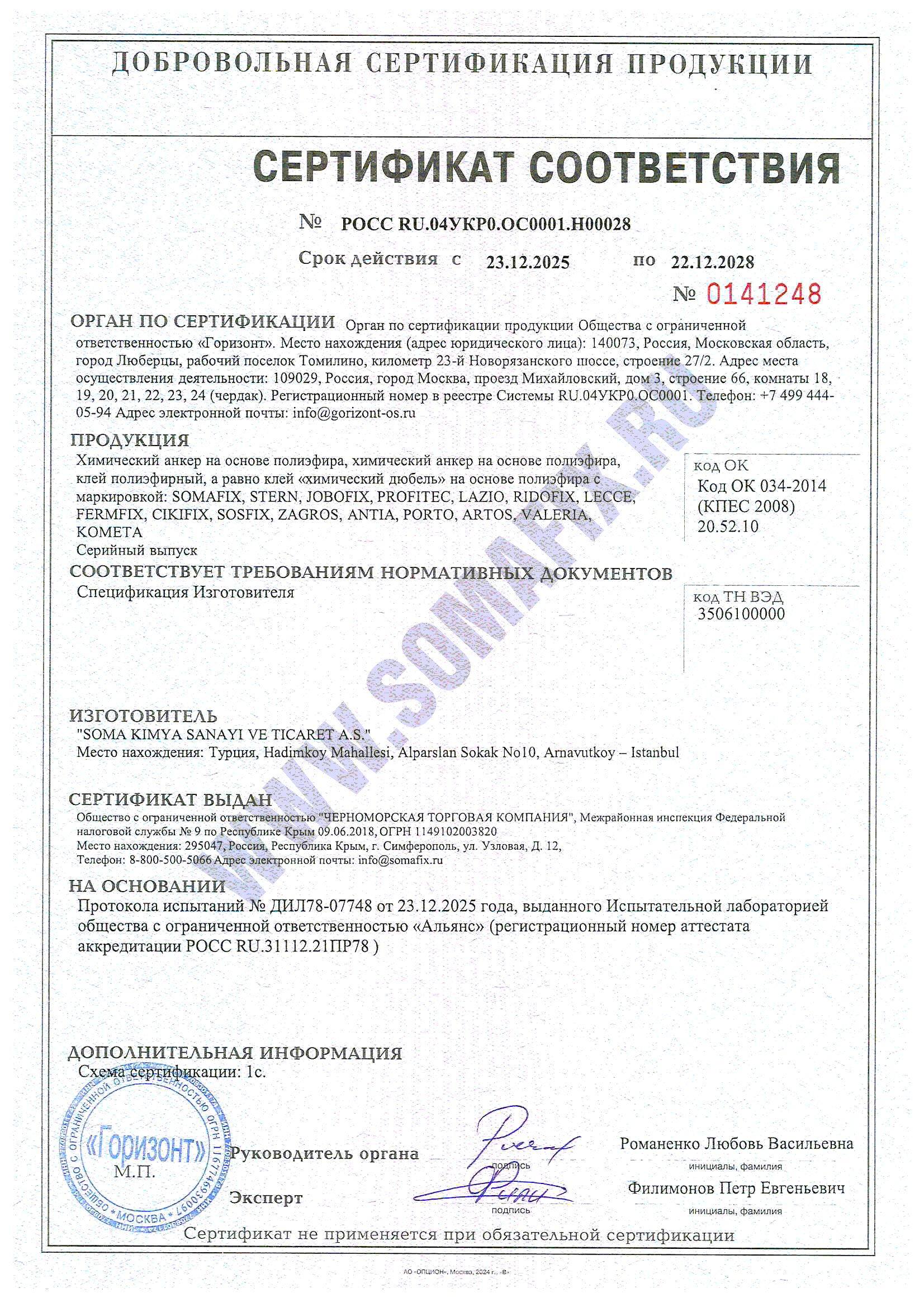 Химический дюбель SOMA FIX на основе полиэфира SE700