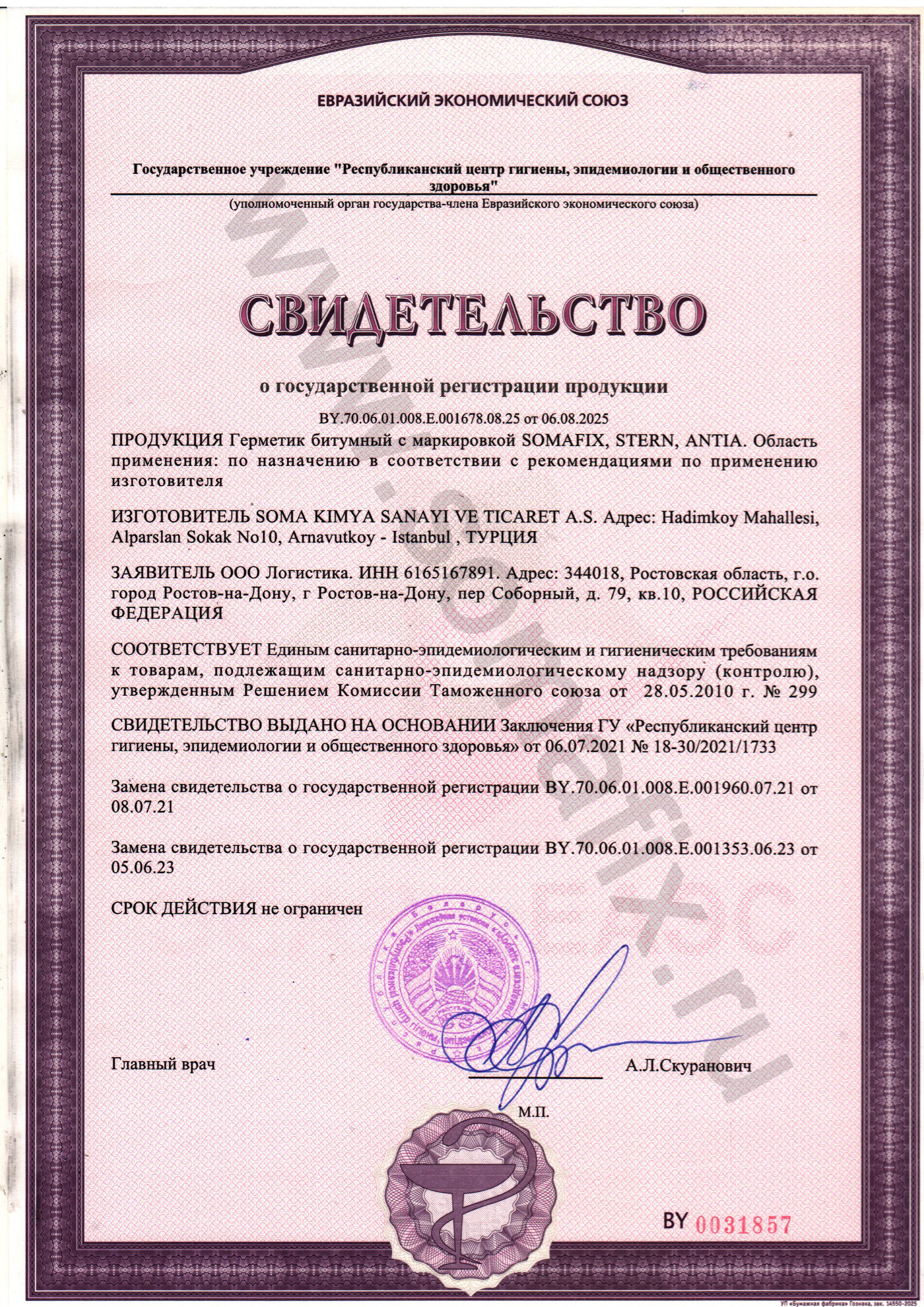 Somafix битумный герметик представляет собой эластичный, водонепроницаемый герметик на битумно-каучуковой основе, применяется для монтажа и склеивания материалов.